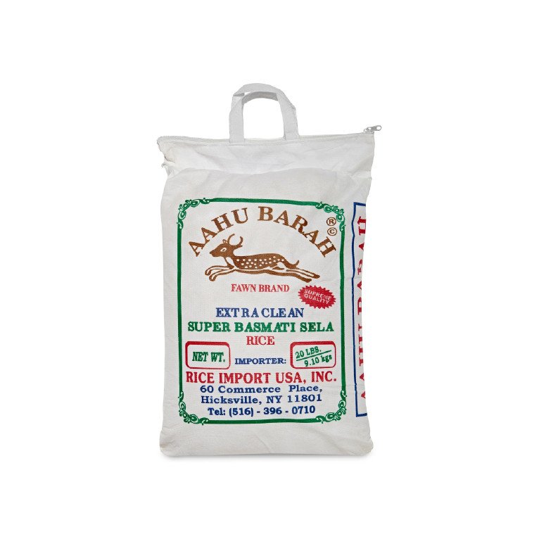 Aahu Barah Rice 20 LB: Premium extra-long Basmati grains, aged for perfect aroma and fluffy, non-sticky texture. Ideal for biryani, pulao, and everyday dishes. Bulk size for family use.