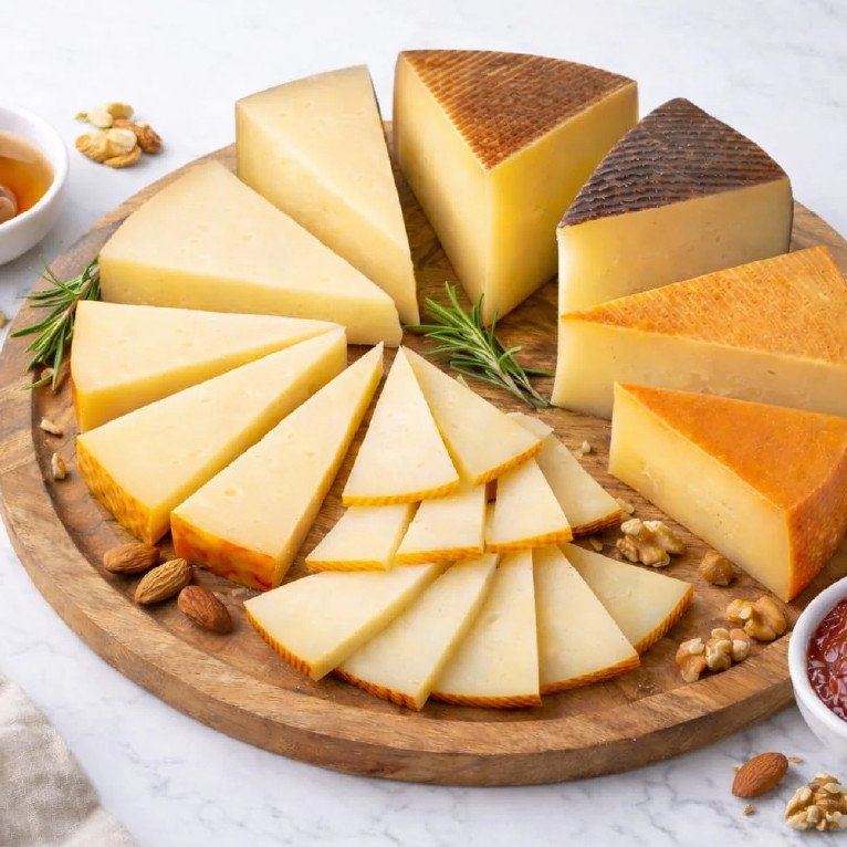 Discover the rich and diverse world of Spanish Cheese , a culinary treasure shaped by centuries of tradition, diverse landscapes, and skilled artisans. With over 100 distinct varieties, Spanish cheese offers an incredible range of flavors, textures, and aromas—from the firm and nutty Manchego of La Mancha to the bold and creamy blues of Asturias .